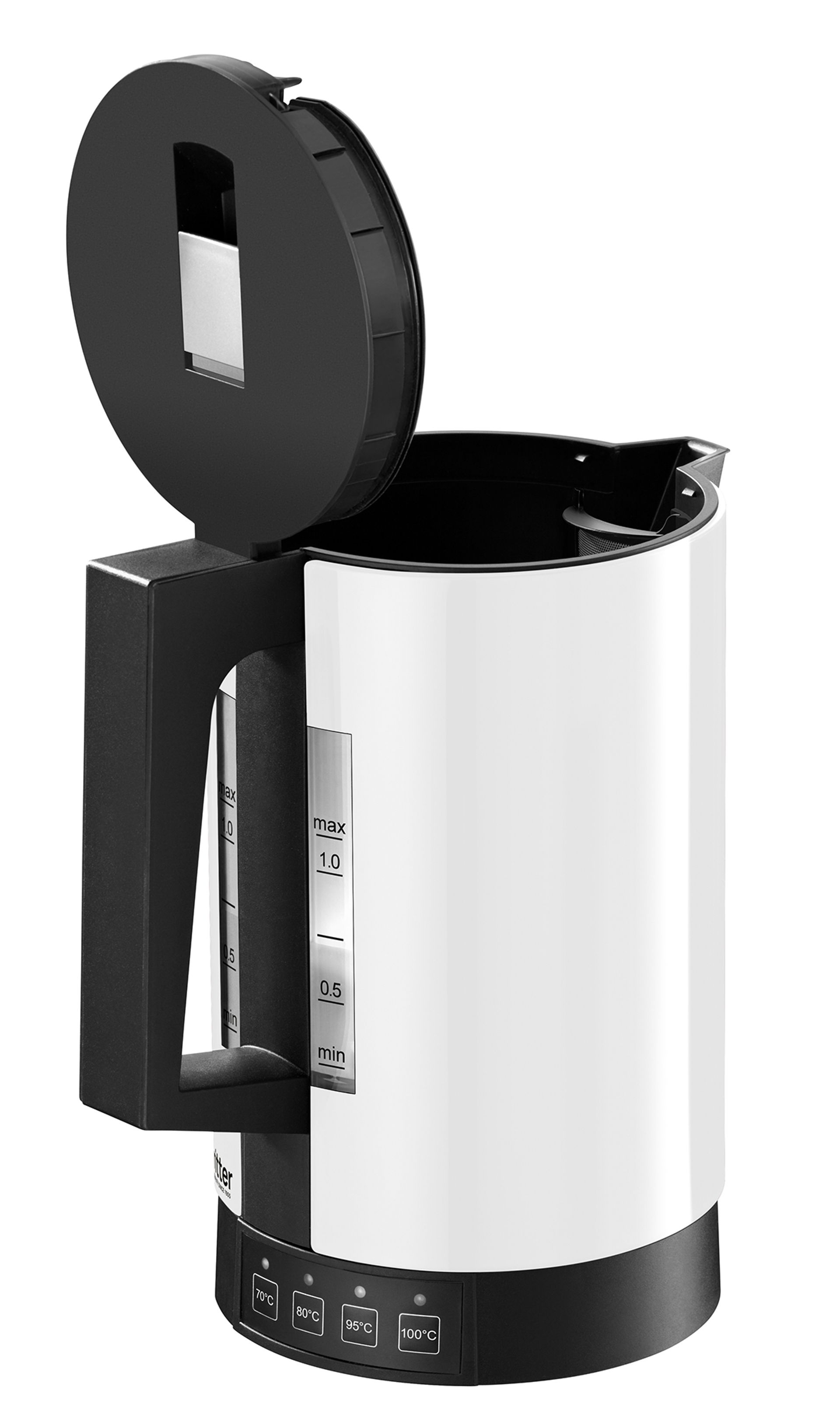Mustan teen, vihreän teen tai kahvin optimaalinen nauttiminen edellyttää oikeaa valmistusta ja ennen kaikkea oikeaa veden lämpötilaa. Neljällä lämpötila-asetuksella 70°, 80°, 95°C ja 100°C voit asettaa juuri tarvittavan lämpötilan. Lisäksi asetettu lämpötila näytetään LED-valoilla.