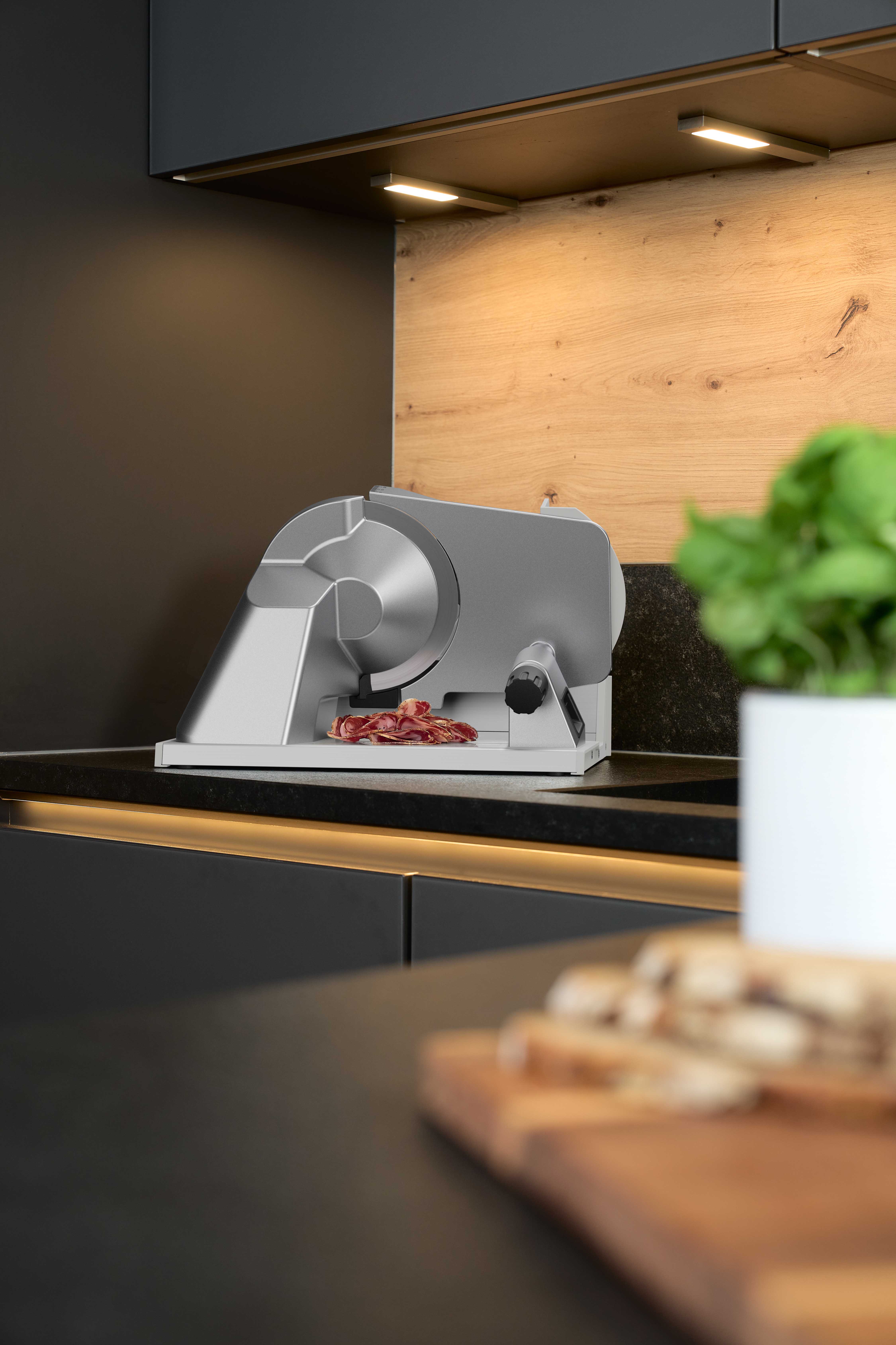 Lupo13:n ainutlaatuinen moottoripää soveltuu sekä leikkeleille että leivälle ja yhdistää toiminnallisuuden ja monipuolisuuden. Sen litteä muoto mahdollistaa erilaisten leikkeleiden ja leivän tehokkaan ja tarkan viipaloimisen, ja sen ohut, moderni muotoilu sopii mihin tahansa keittiöön ja vie verrattain vähän tilaa.