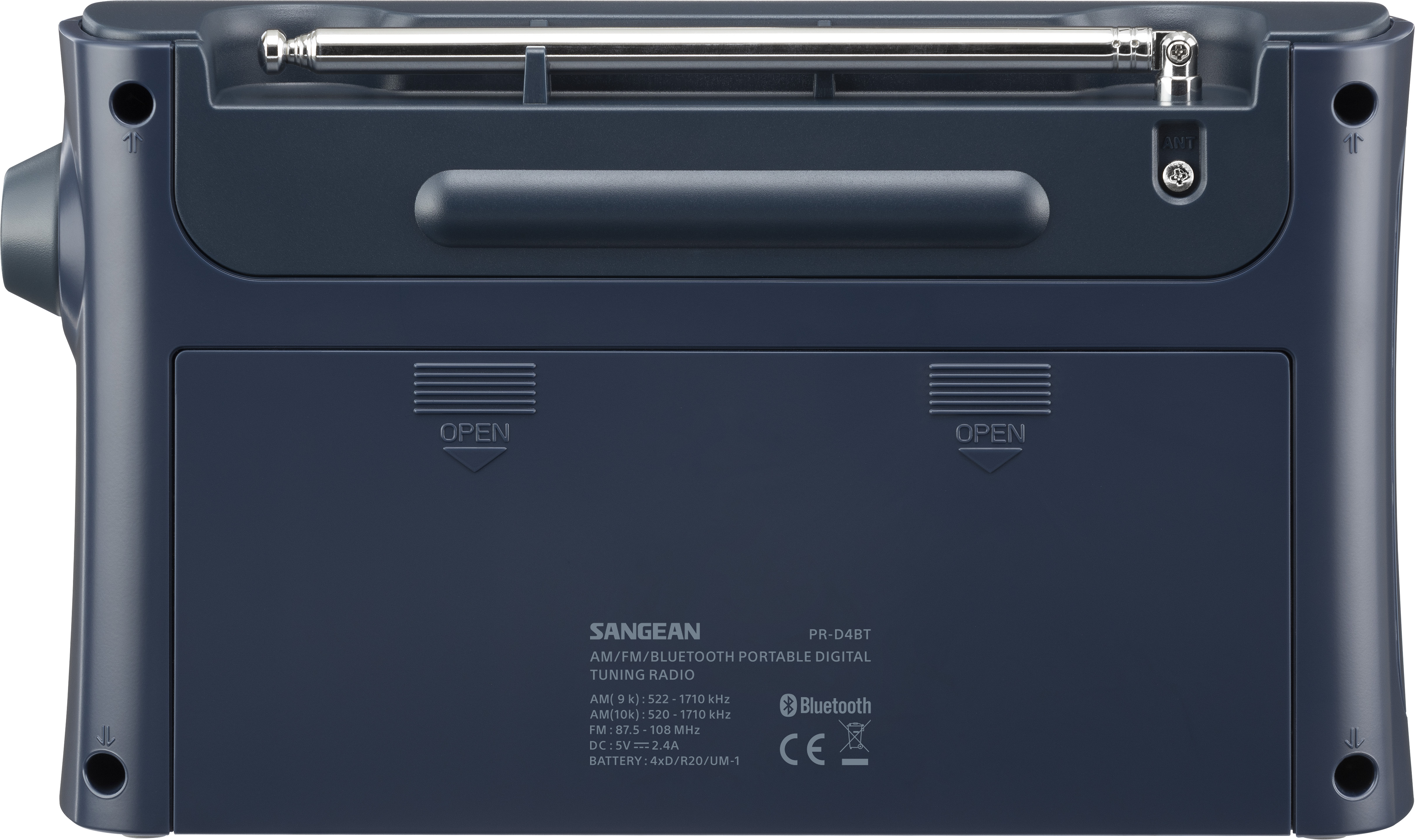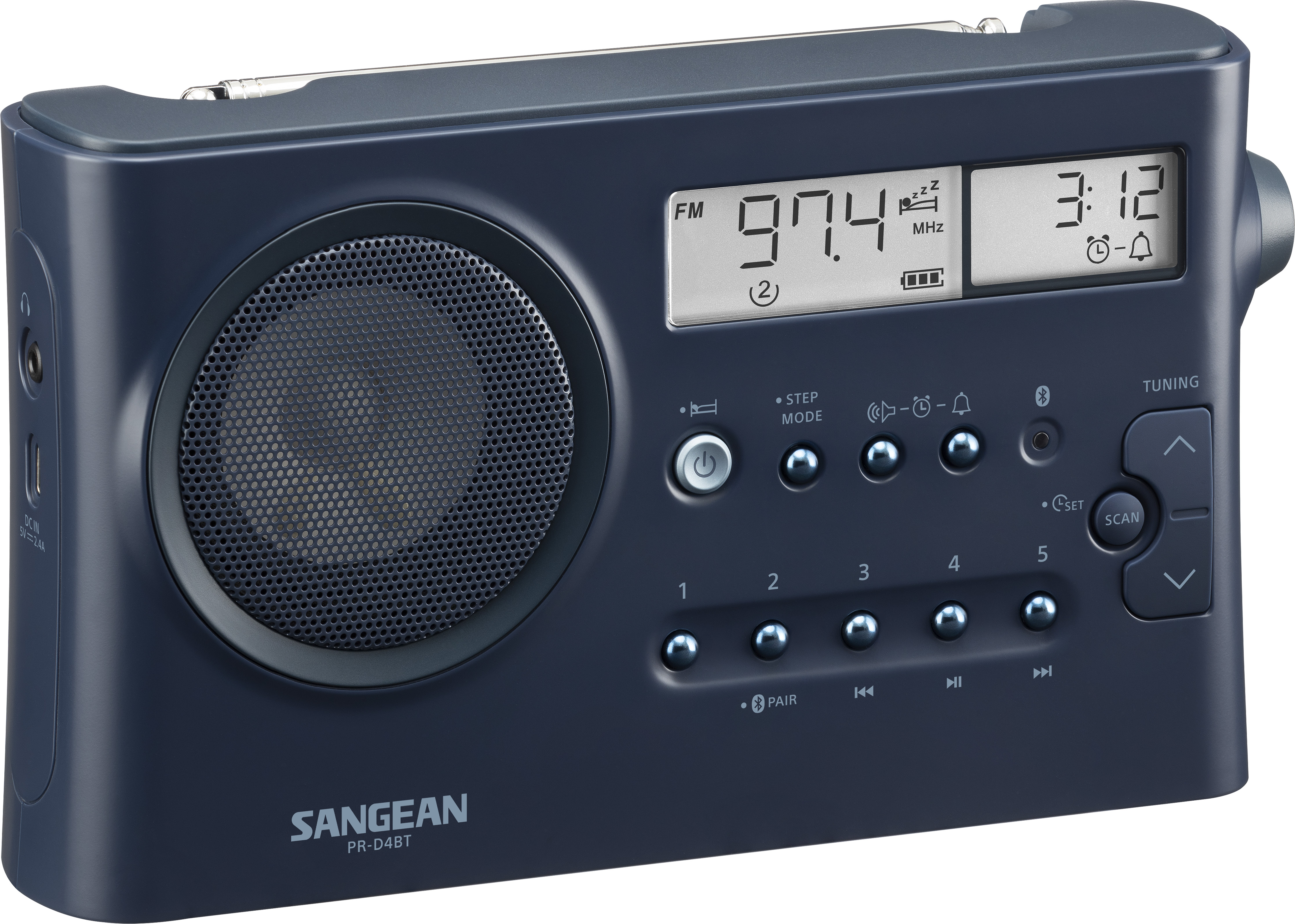 Tummansininen Sangean PR-D4BT kannettava pöytä/matkaradio AM/FM vastaanotolla sekä Bluetooth yhteydellä. Radion vastaanotto on taattua Sangean laatua, radio kuuluu monissa paikoissa missä muut radiot eivät toimi. Radiossa on kiinni FM-teleskooppiantenni. Radiokanavat saat haettua kätevästi automaattihaulla.