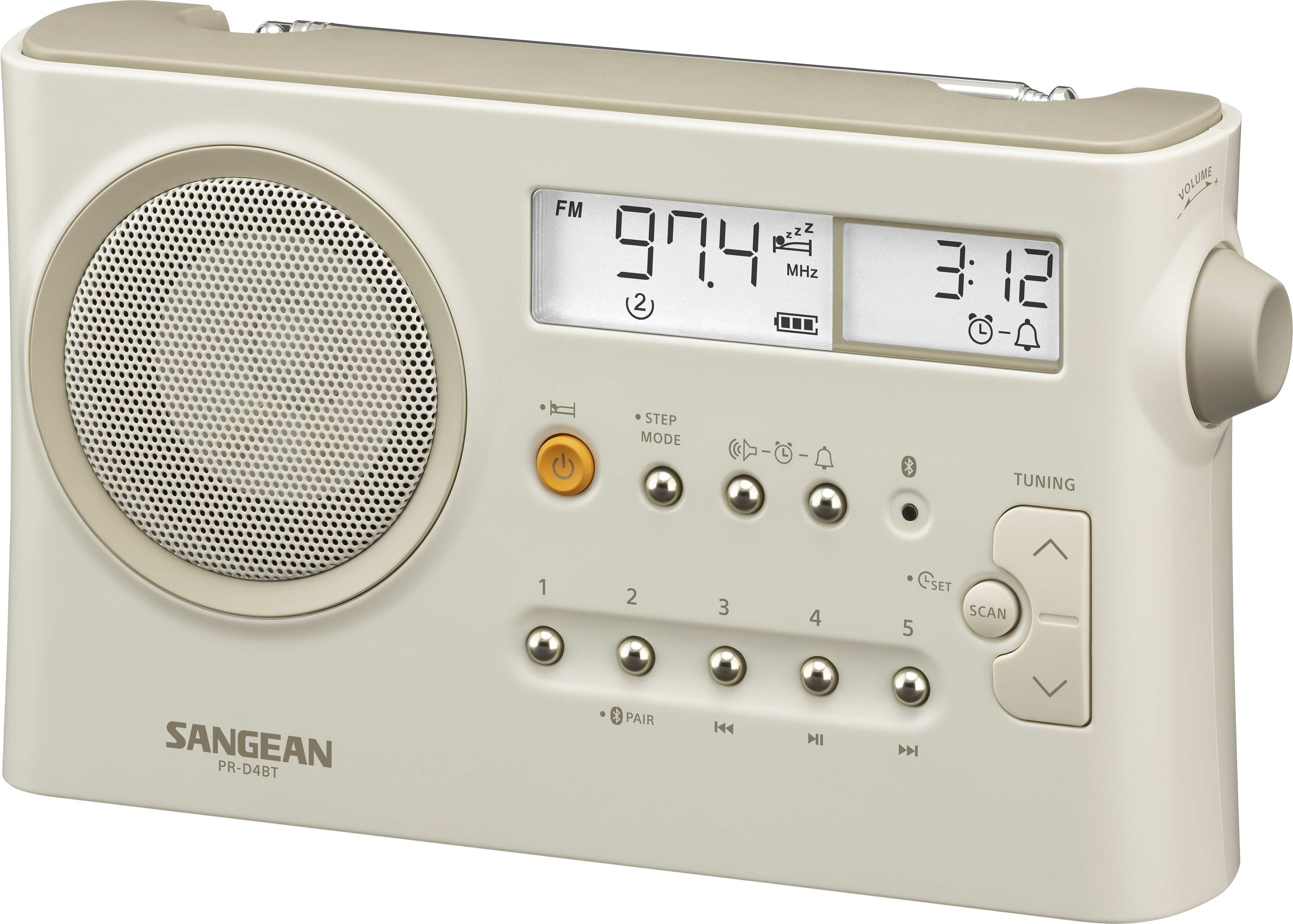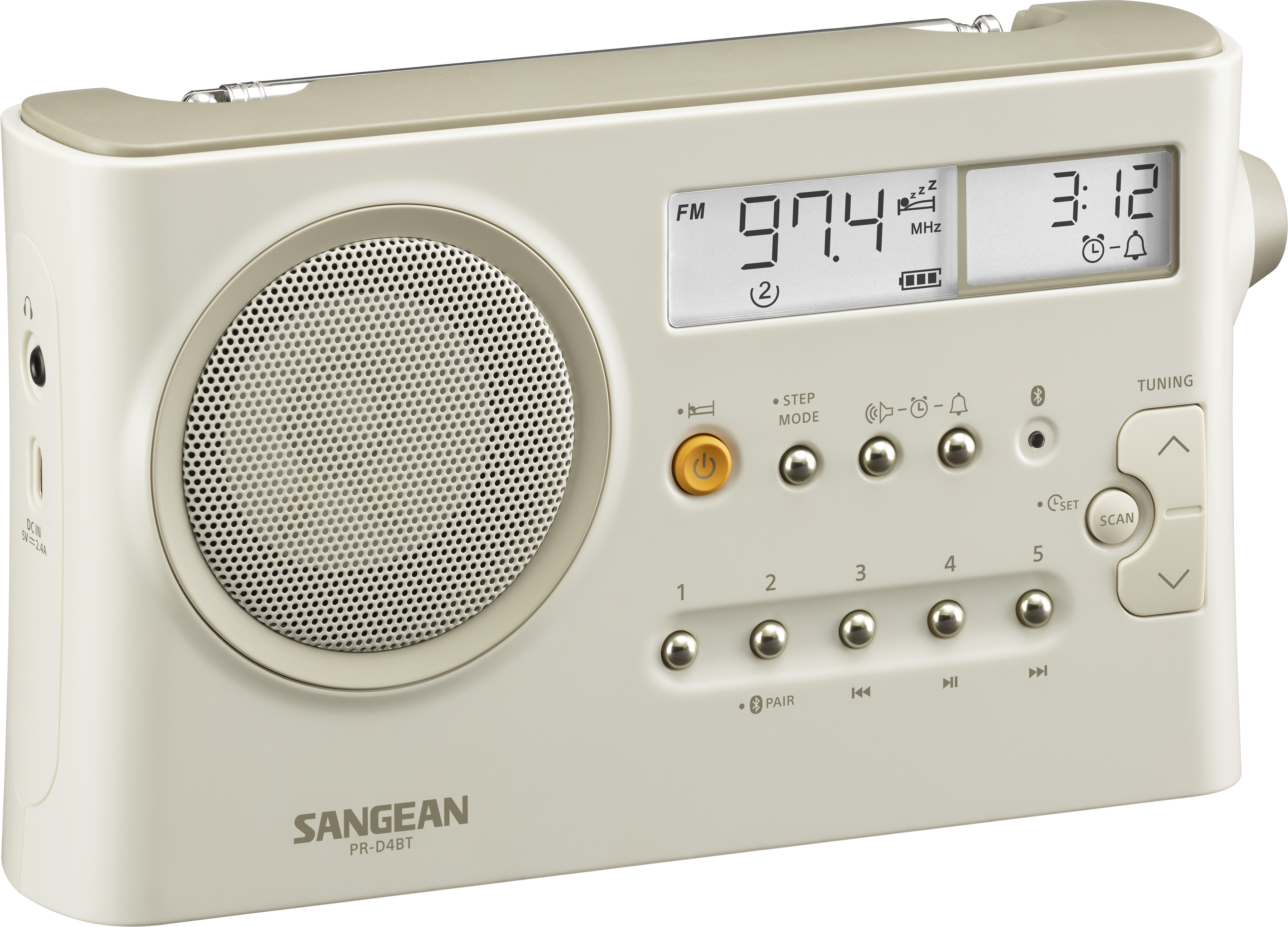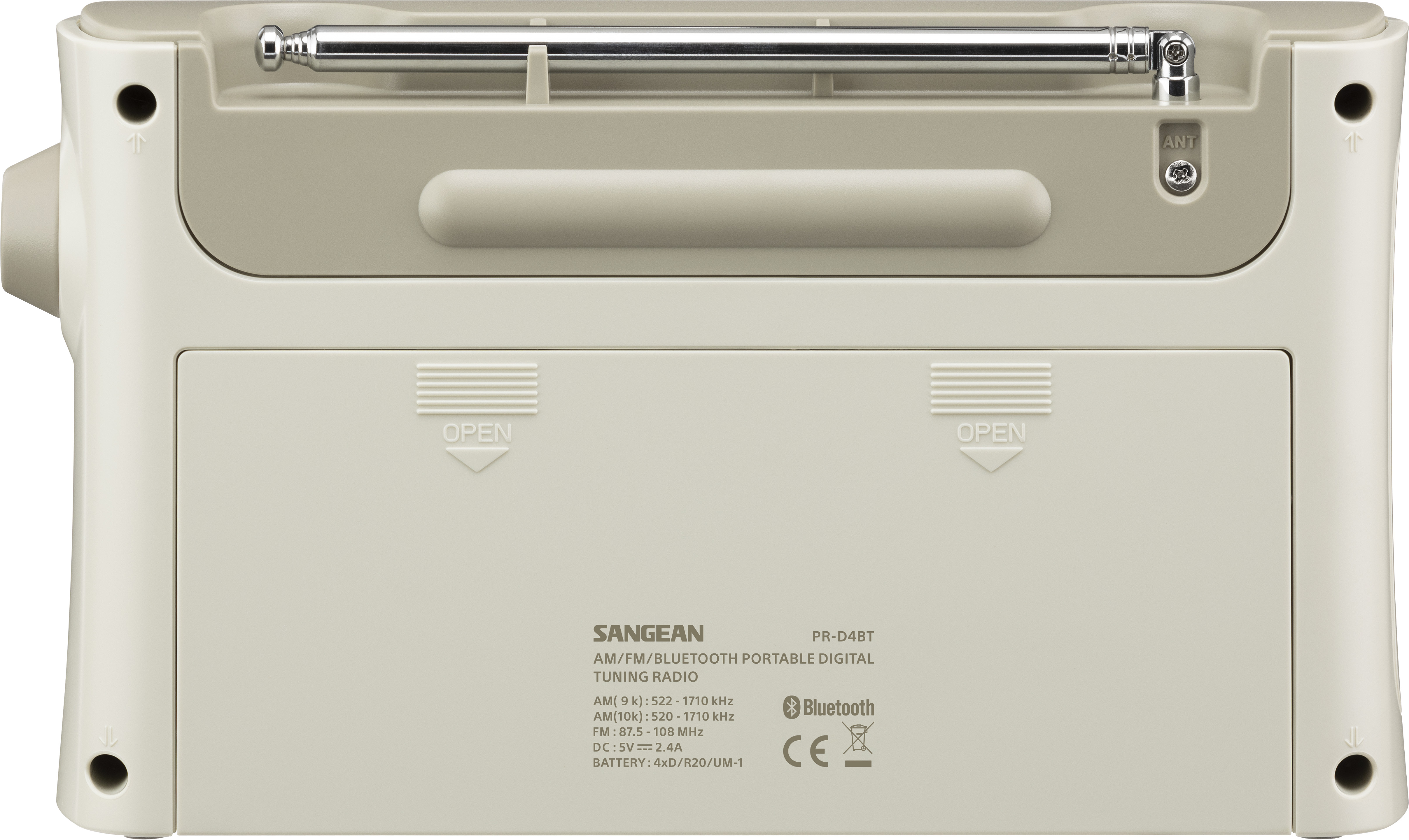 Beige Sangean PR-D4BT kannettava pöytä/matkaradio AM/FM vastaanotolla sekä Bluetooth yhteydellä. Radion vastaanotto on taattua Sangean laatua, radio kuuluu monissa paikoissa missä muut radiot eivät toimi. Radiossa on kiinni FM-teleskooppiantenni. Radiokanavat saat haettua kätevästi automaattihaulla.