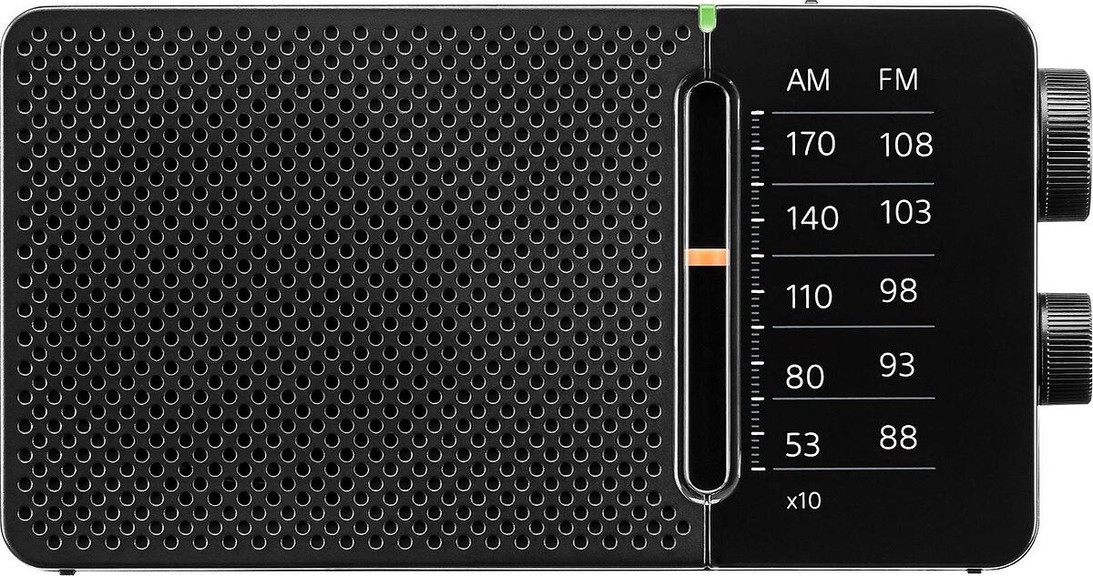 Kätevän kokoinen taskuradio sisäänrakennetulla kaiuttimella. Radio vastaanottaa FM & AM taajuuksia.