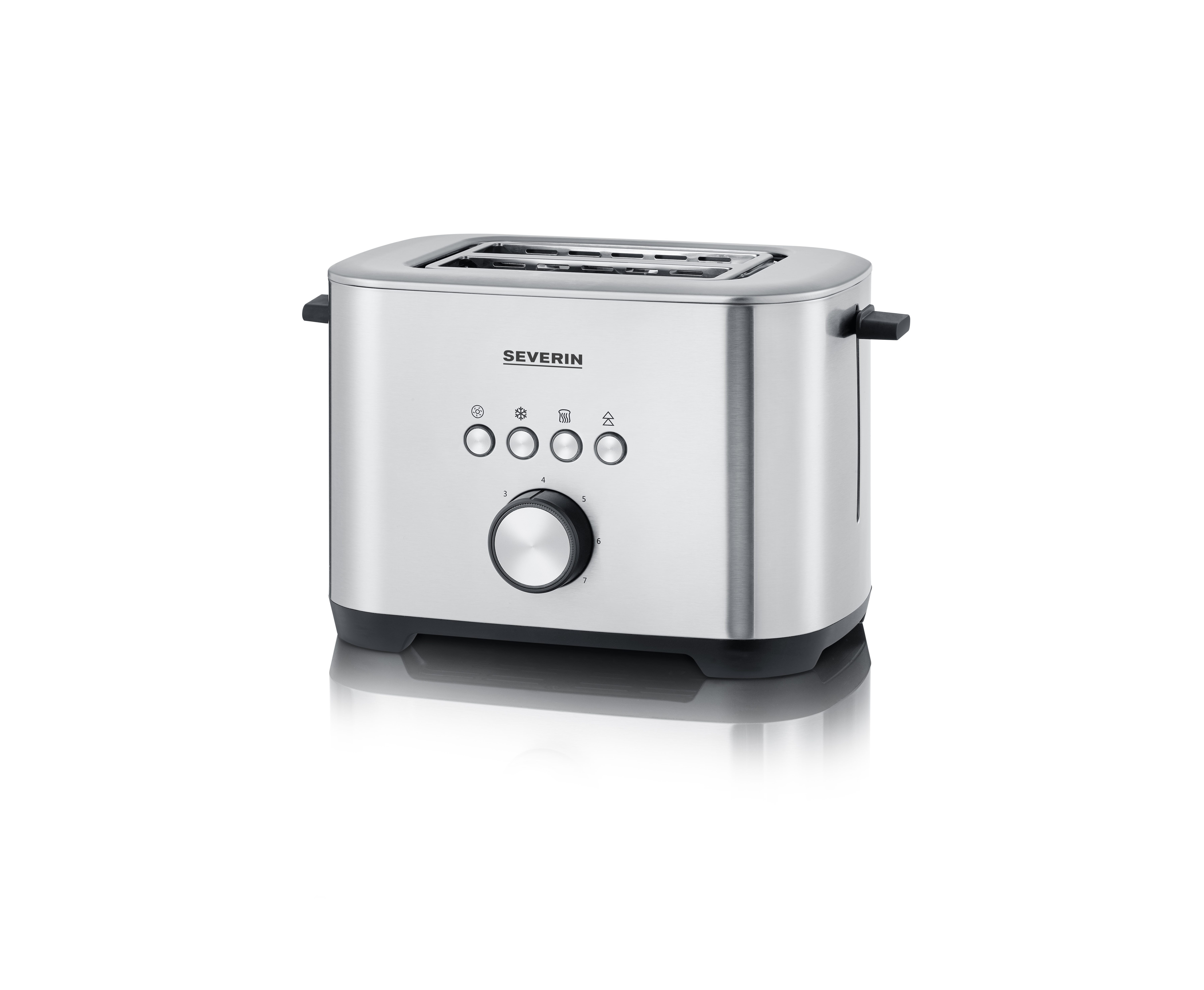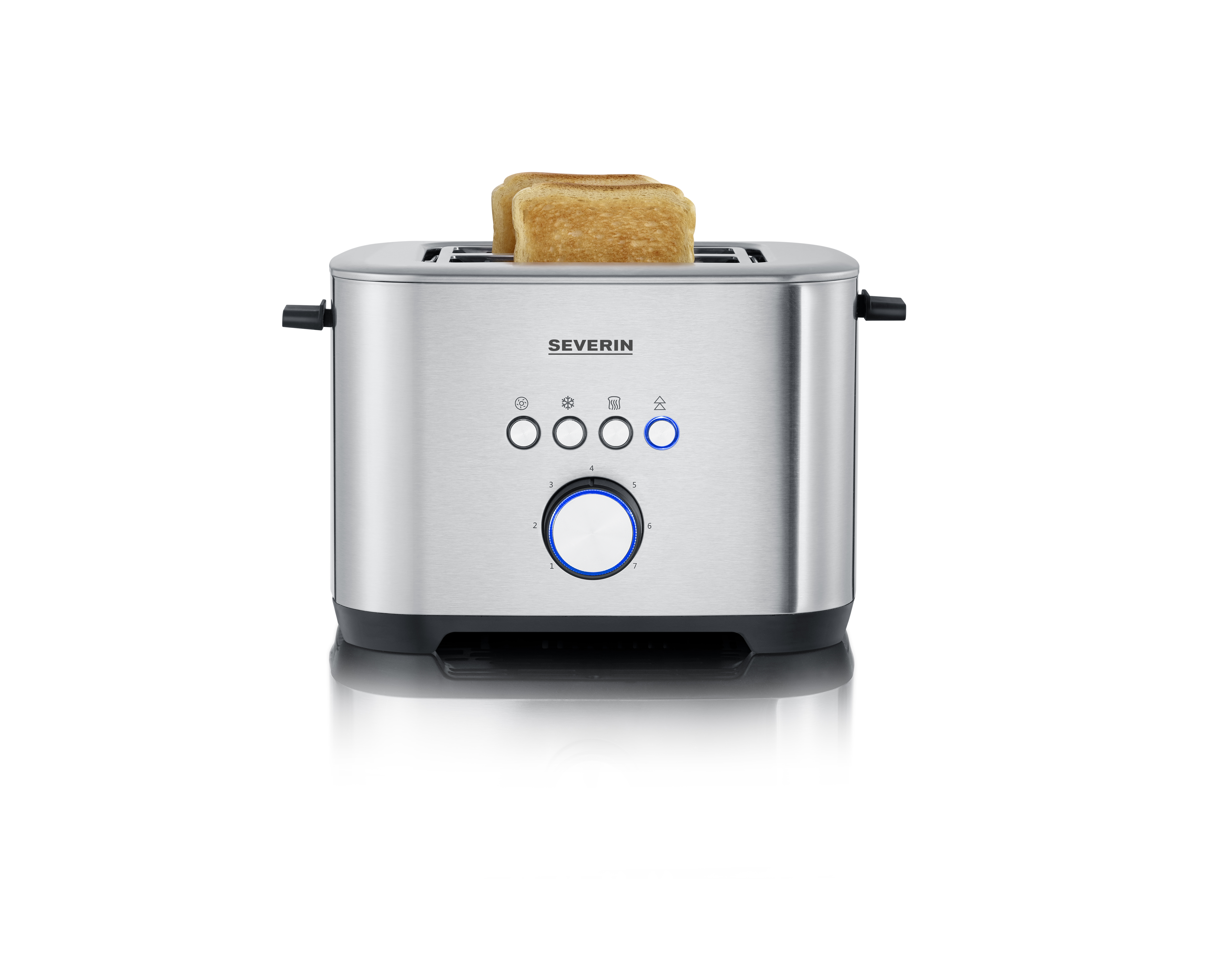 Severin AT2620 leivänpaahtimella paahdat kätevästi 2 isoa leivänsiivua. Bagel-telineen avulla valmistat maistuvat bagelit esim. niin että toinen puoli lämpenee ja toinen muuttuu rapeaksi. Sulatus-, lämmitys- vapautuspainike ja 7 säädettävää paahtoastetta takaavat yksilöllisen tuloksen. Severin AT2620 leivänpaahtimessa on myös irrotettava murukaukalo kätevää puhdistusta varten.