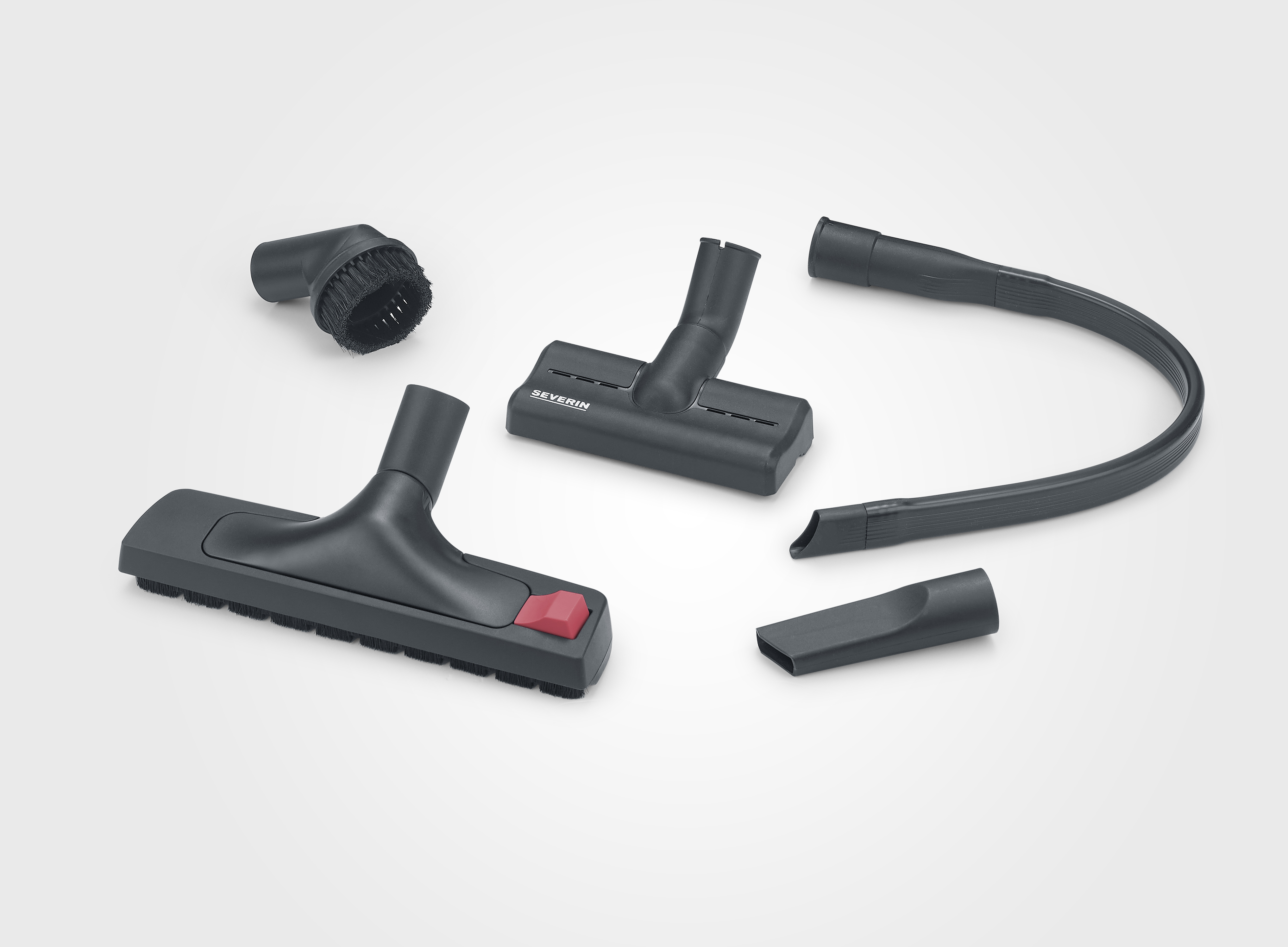 XXL-verhoilusuutin, joustava rakosuutin, click-brush-järjestelmä, rako- ja huonekalukiinnike sekä tarvikepidike imuputkessa.