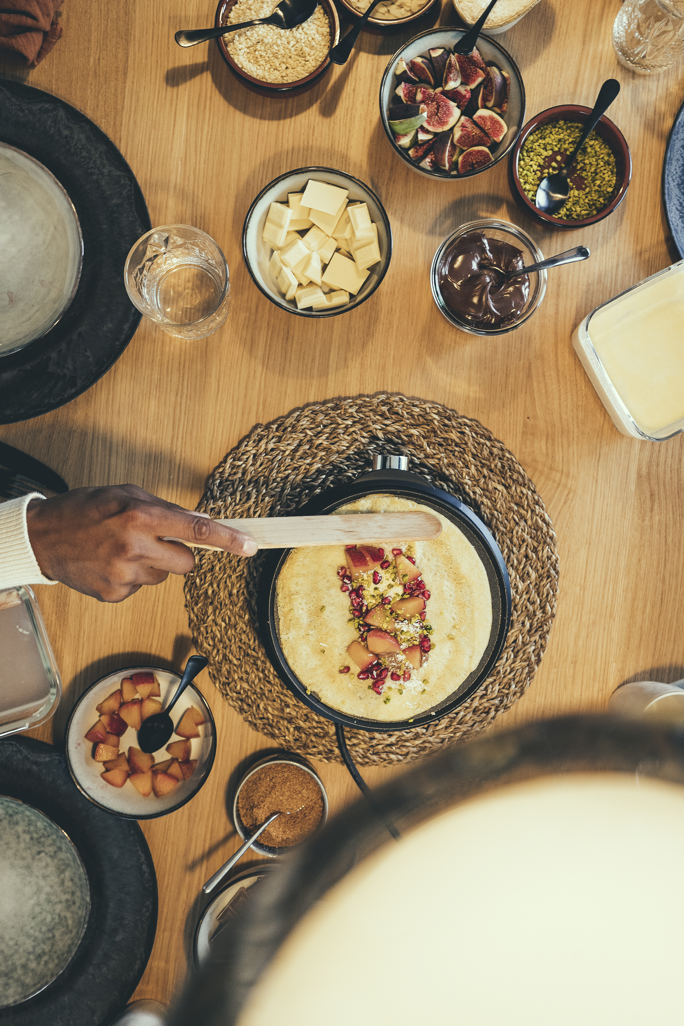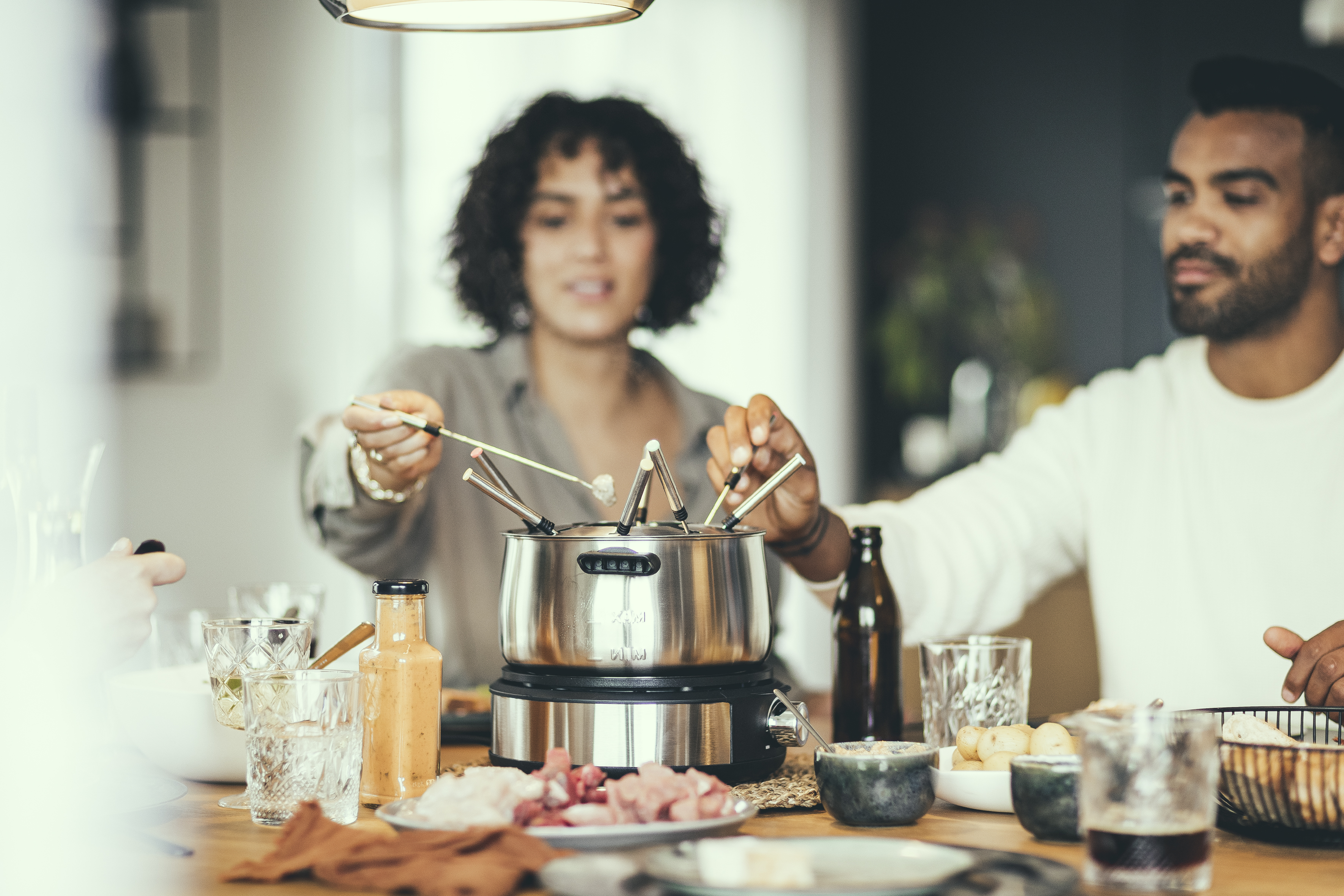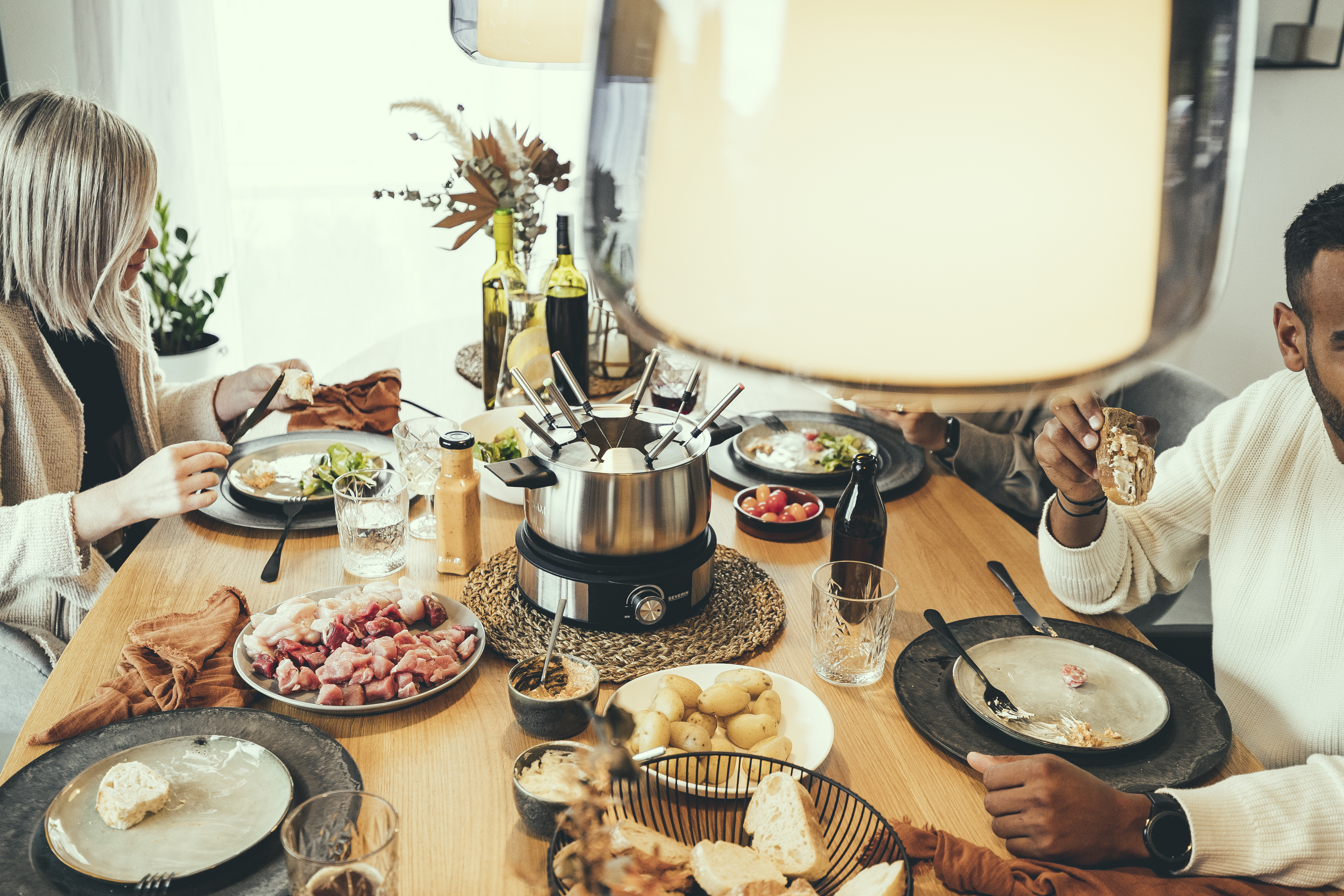 Moderni ja monipuolinen sähköinen fonduepannu tarkalla lämmönsäädöllä antaa sinulle täydellisen ruoanlaittokokemuksen joka kerta. Kun asetat pöydälle erilaisia tuoreita raaka-aineita ja annat vieraidesi valita suosikkinsa, luot interaktiivisen ja viihdyttävän illallisen, jossa fonduepannu on huomion keskipisteenä.
