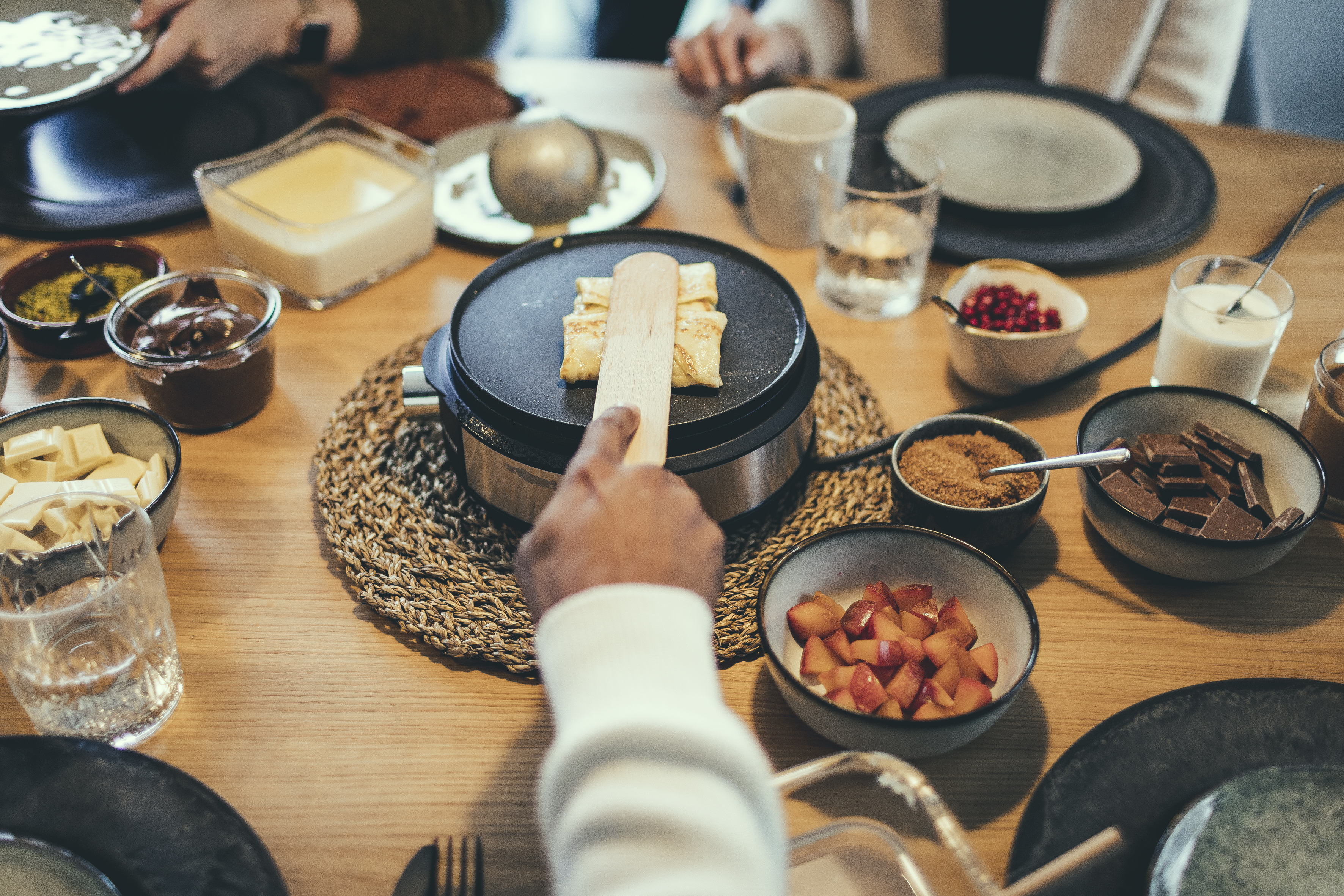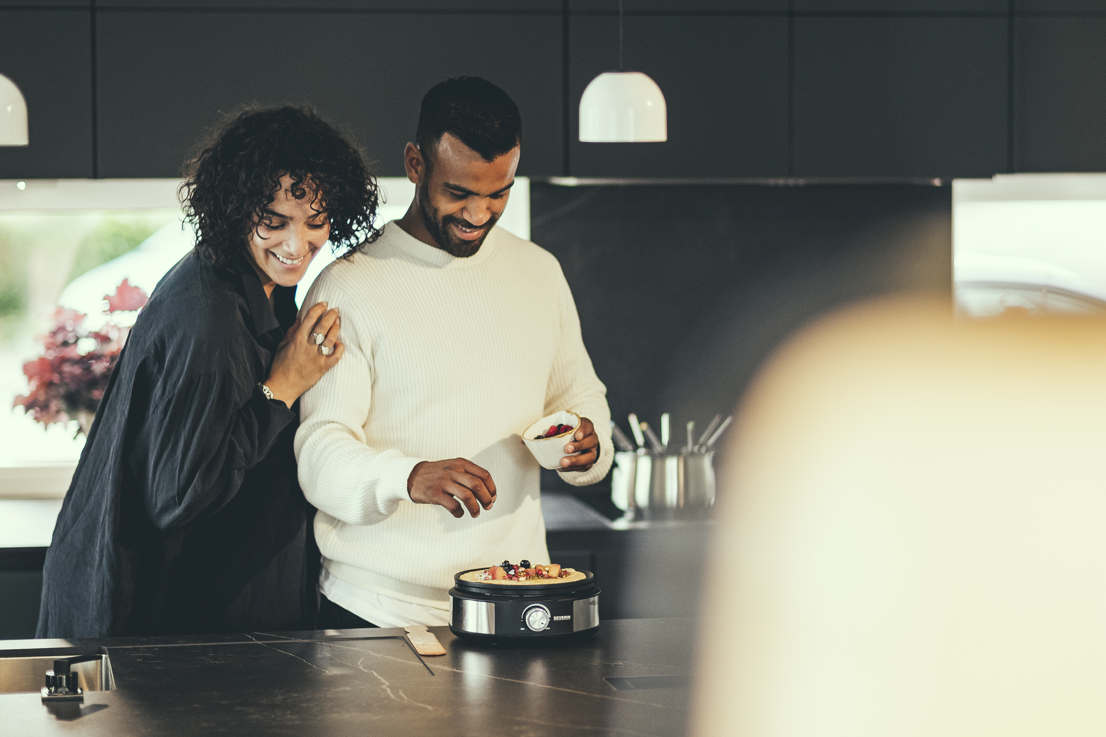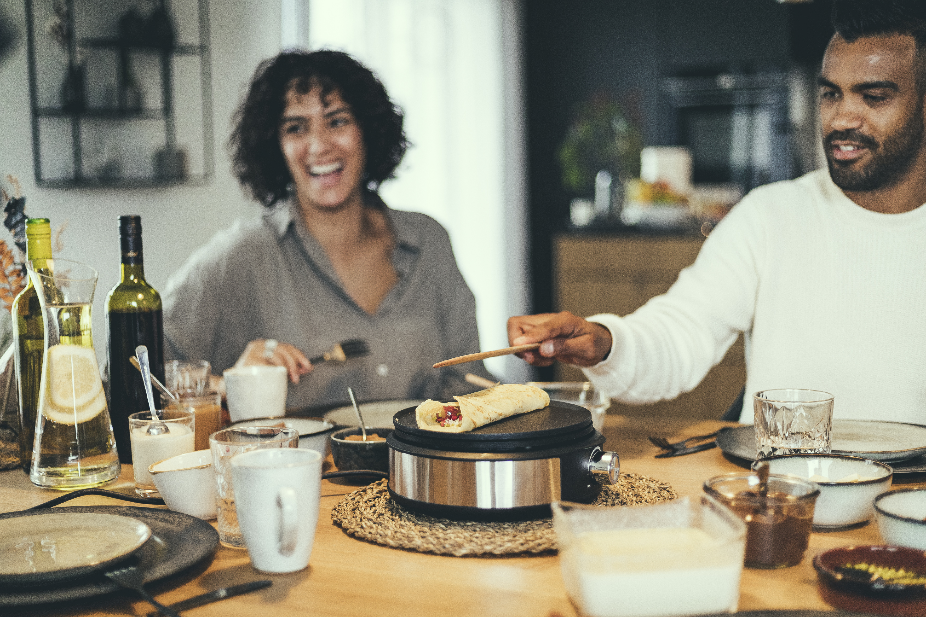 Tämä innovatiivinen 2-in-1-malli voidaan helposti muuntaa crepes-koneeksi, jolloin voit päättää aterian herkullisilla crepeillä, jotka tarjoillaan erilaisten makeiden lisukkeiden kera. Sen joustavuuden ansiosta voit mukauttaa ruokailukokemuksen vieraiden makumieltymysten mukaan ja luoda ikimuistoisia hetkiä pöydässä.