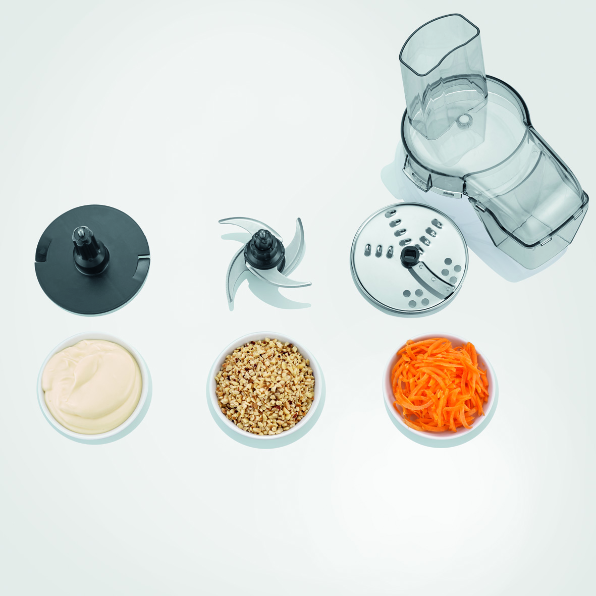 - Mukana käytännöllinen lisävaruste ruoan leikkaamiseen tai raastamiseen