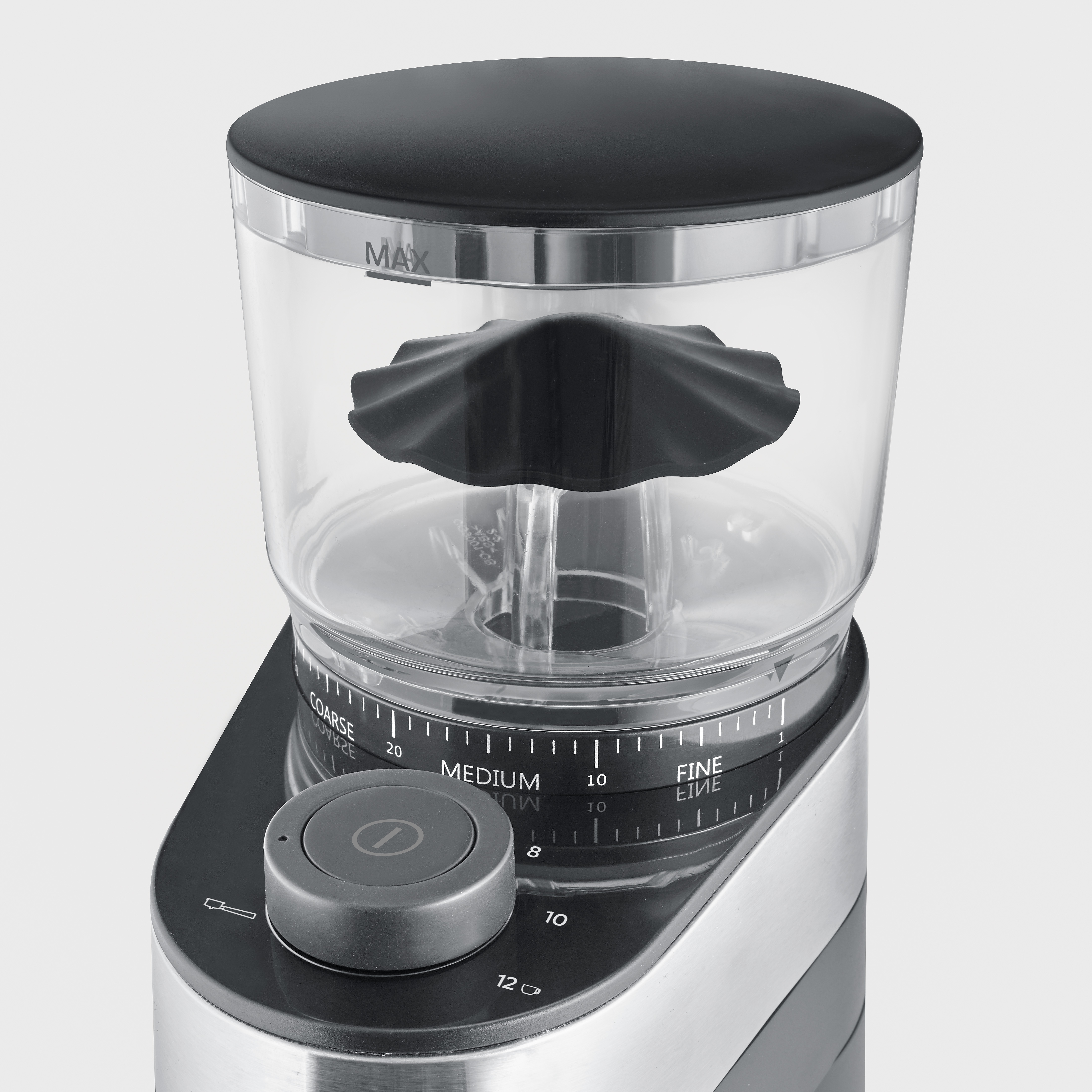 Kahvimylly on varustettu irrotettavalla, läpinäkyvällä papusäiliöllä, jonka tilavuus on 240 g, joten voit jauhaa suuren määrän papuja kerralla. Irrotettava jauhesäiliö, johon mahtuu 130 g kahvia, on varustettu kätevällä kannella, joka estää kahvijauheen vuotamisen ja pitää sen tuoreena pidempään.
