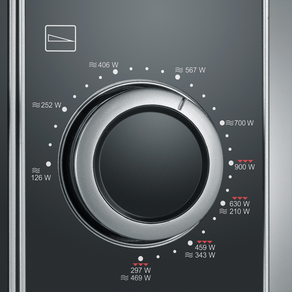 Tyylikäs mikroaaltouuni grillitoiminnolla ja jopa 9 tehoasetuksella. Grillitoiminnon avulla saat esim. pizzaan tai piirakkaan rapean ja hyvän pinnan. Mikroaaltouunia on helppo ohjata käsisäätimillä. Toisella säädetään aikaa 30 minuuttiin asti ja toisella säädetään tehoa.