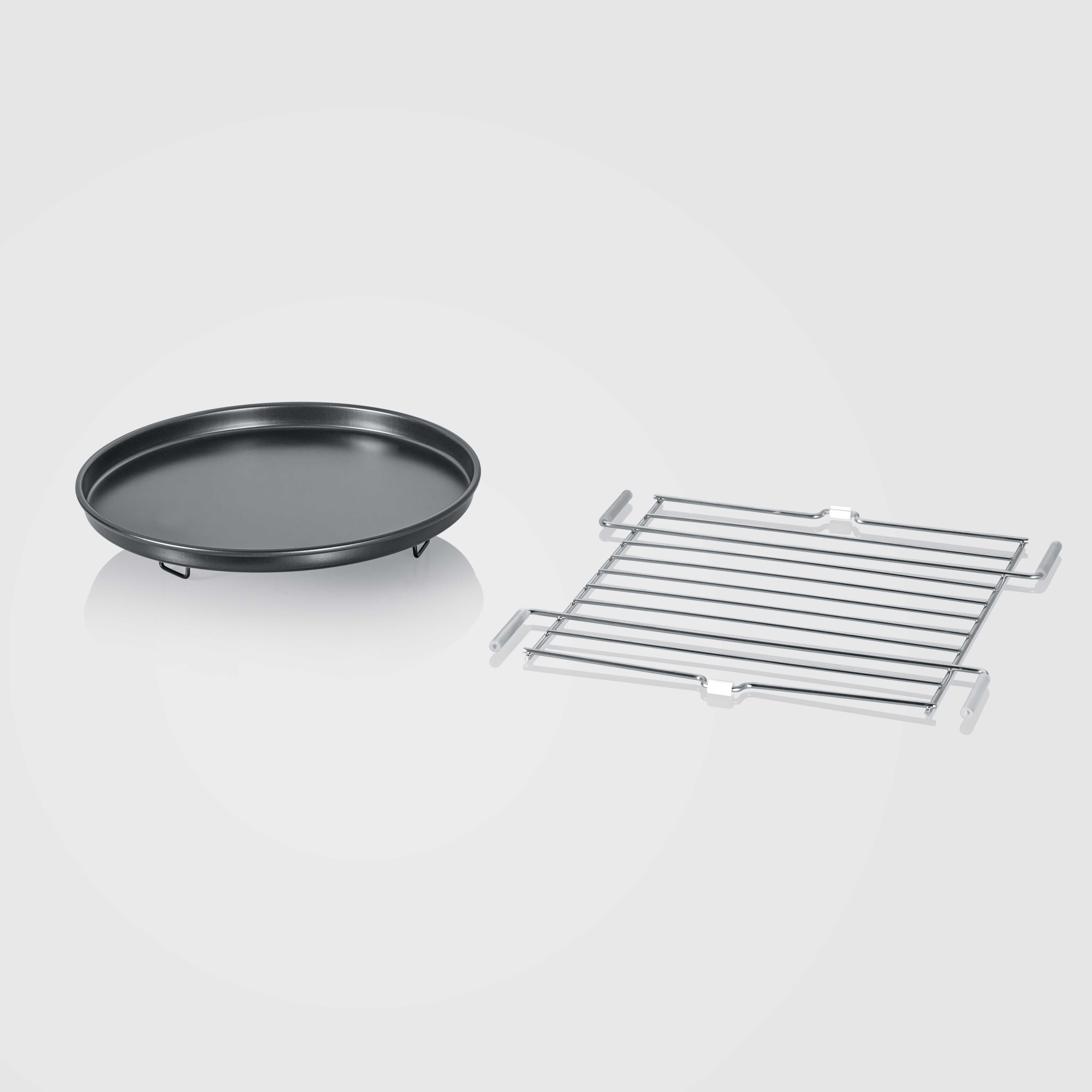 Integroidun grillitoiminnon ja jopa 230 °C:n kuumailmatoiminnon ansiosta voit helposti gratinoida tai valmistaa erilaisia muita ruokia. Erillinen teline mahdollistaa jopa kypsennyksen kahdella tasolla, joten kaksi ruokalajia voidaan valmistaa samanaikaisesti.