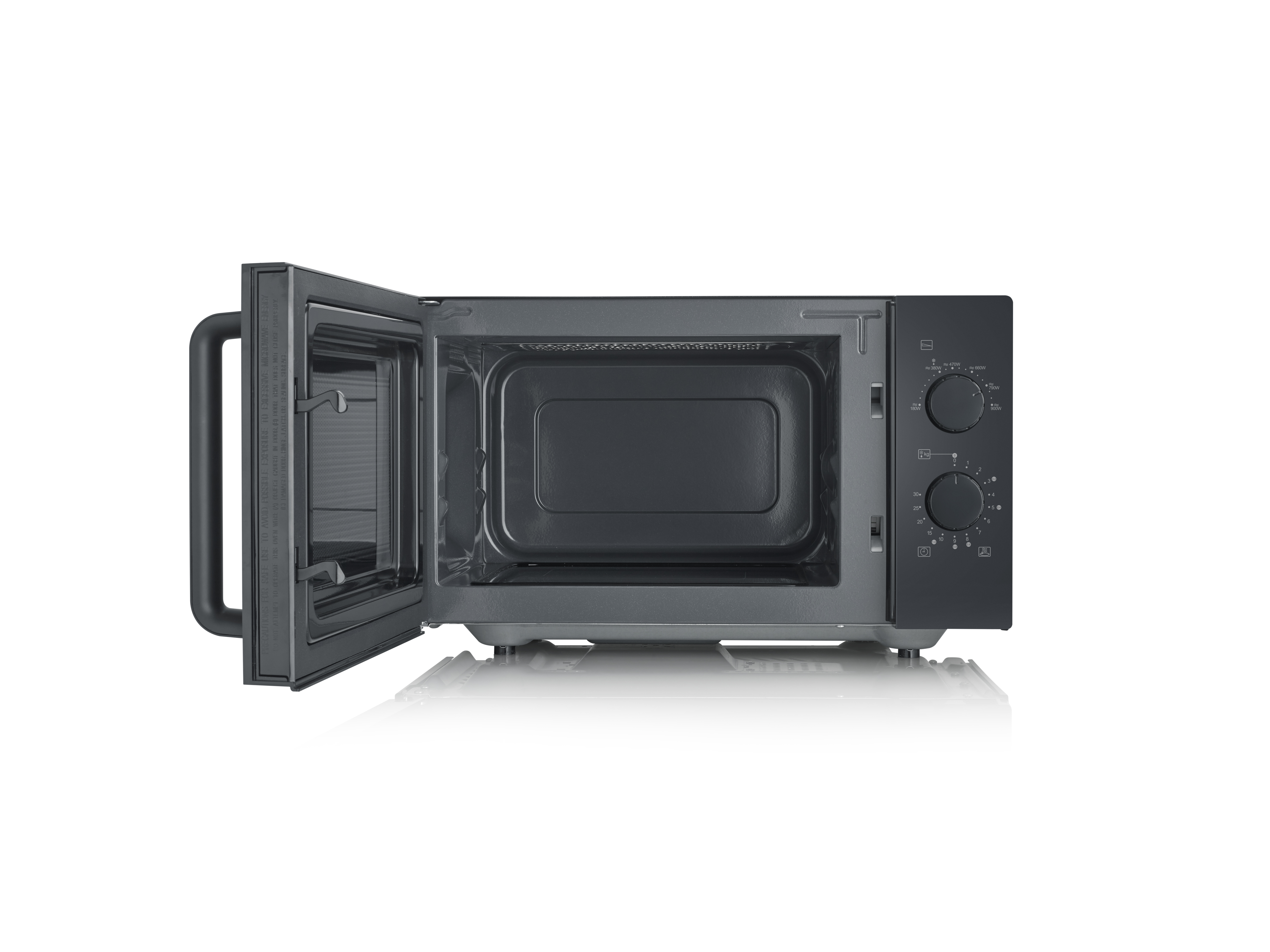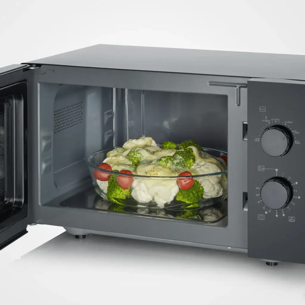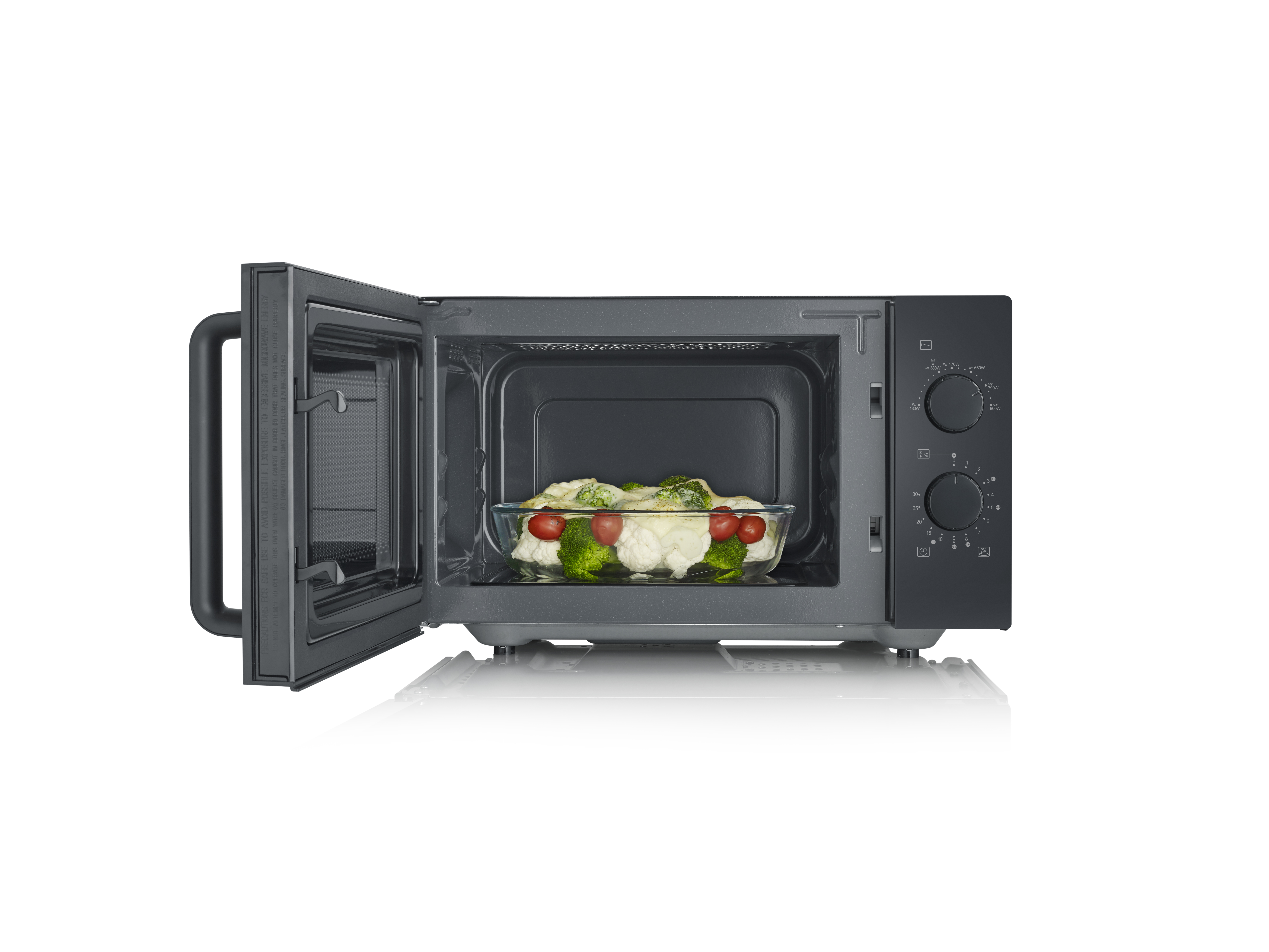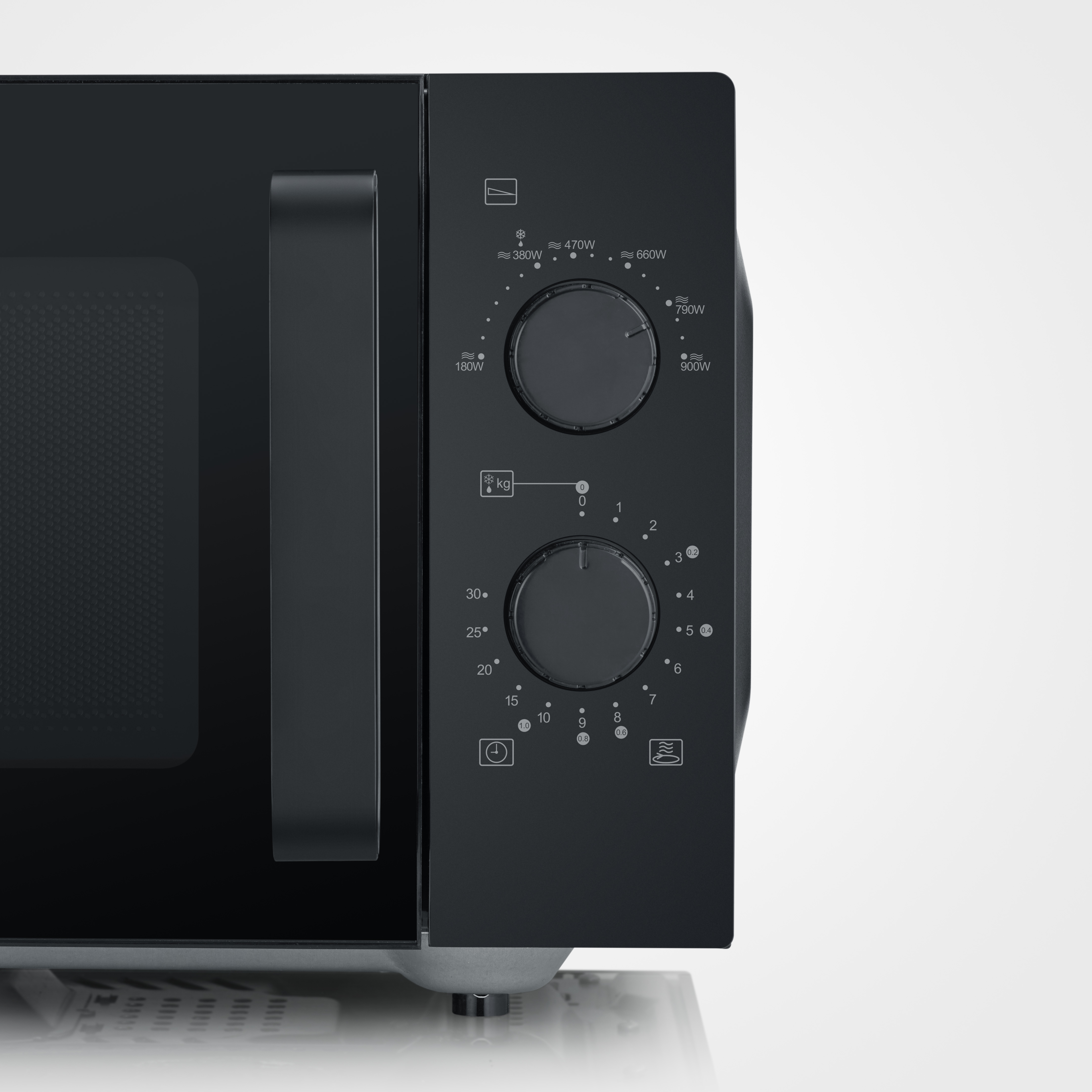 Tutustu tyylikkääseen mustaan mikroaaltouuniin 900 W teholla ja 25 litran tilavuudella. Siinä on helppokäyttöiset manuaaliset teho- ja aikasäätimet. Unohda hankalat pyörivät lautaset – tämä uraauurtava malli on varustettu innovatiivisella lasisella pohjalevyllä, joka jakaa lämmön tasaisesti parhaan tuloksen saavuttamiseksi.