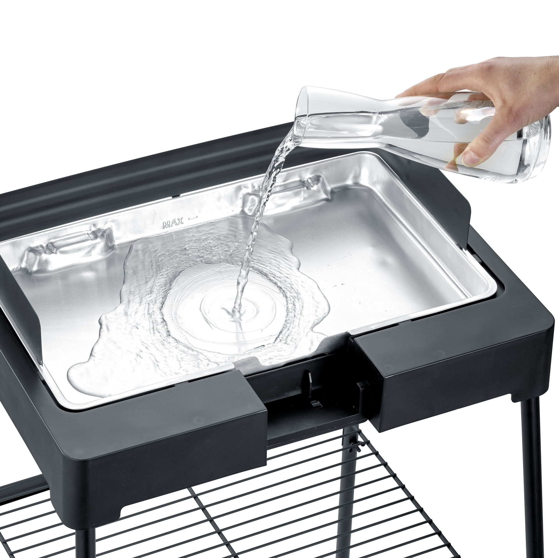 Tämä sähkögrilli on suunniteltu tarjoamaan käyttäjilleen käytännöllisen ja laadukkaan kokemuksen. Lämmönsäädin mahdollistaa lämpötilan tarkan säädön, mikä on olennaista erilaisten ruokien valmistuksessa. Irrotettavat osat, kuten grillausritilä ja rasvasuojalevy, helpottavat puhdistusta, ja voit käyttää vettä minimoidaksesi savun ja hajun.