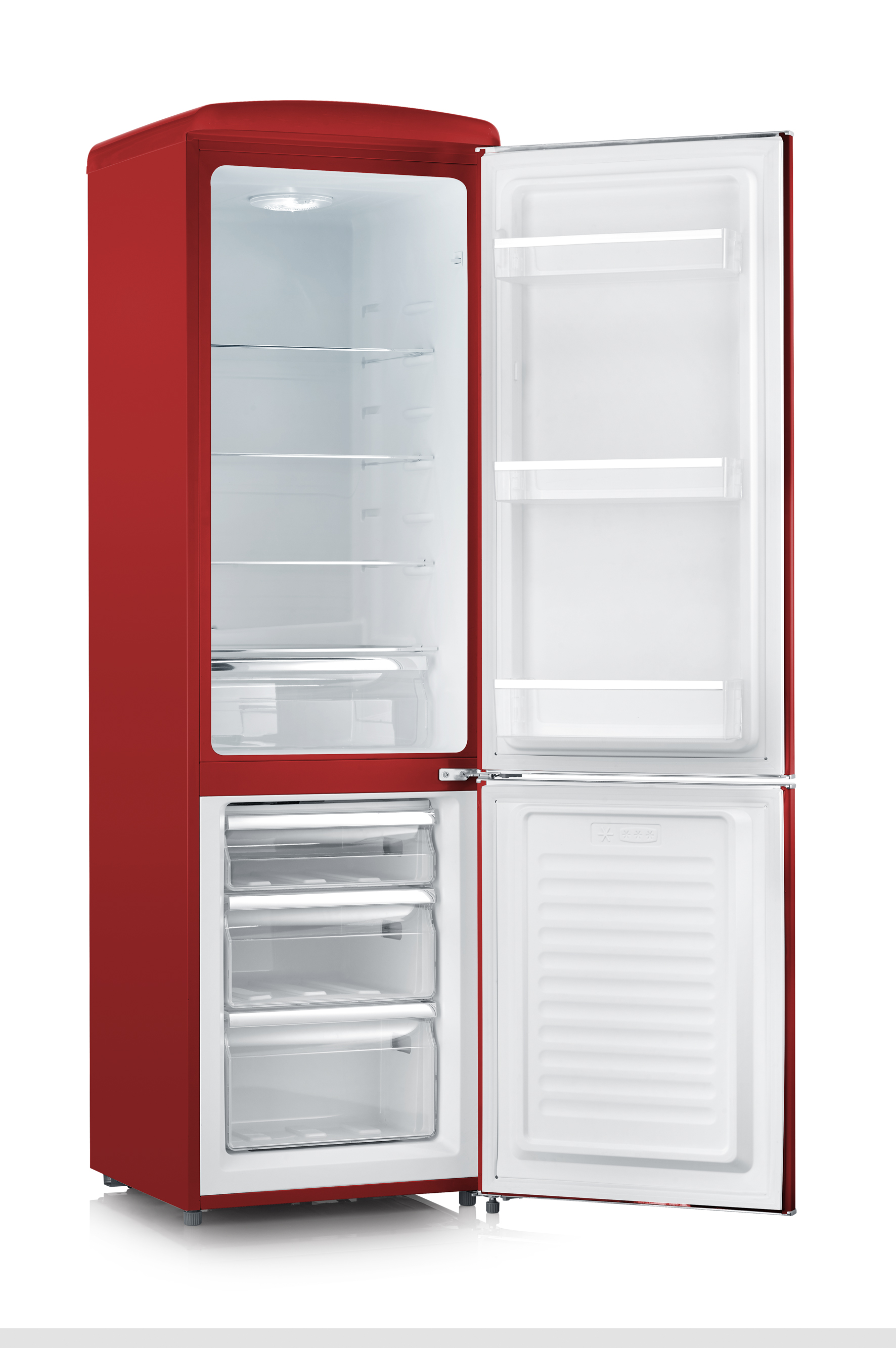 Severin RGK8917 – tämä punainen, retrohenkinen jääkaappi-pakastin, jossa on krominvärinen kahva, varastaa huomion jokaisessa kodissa.