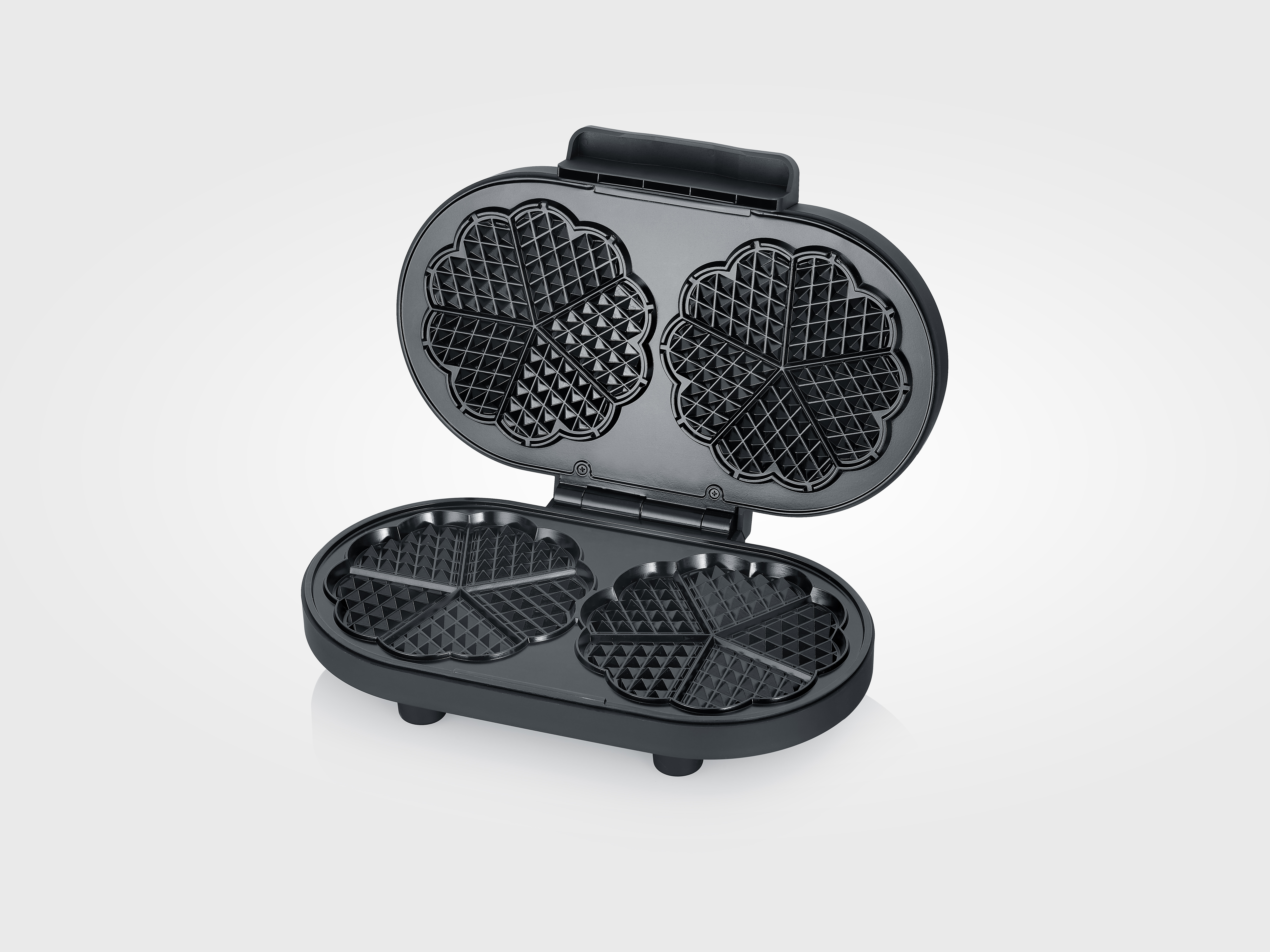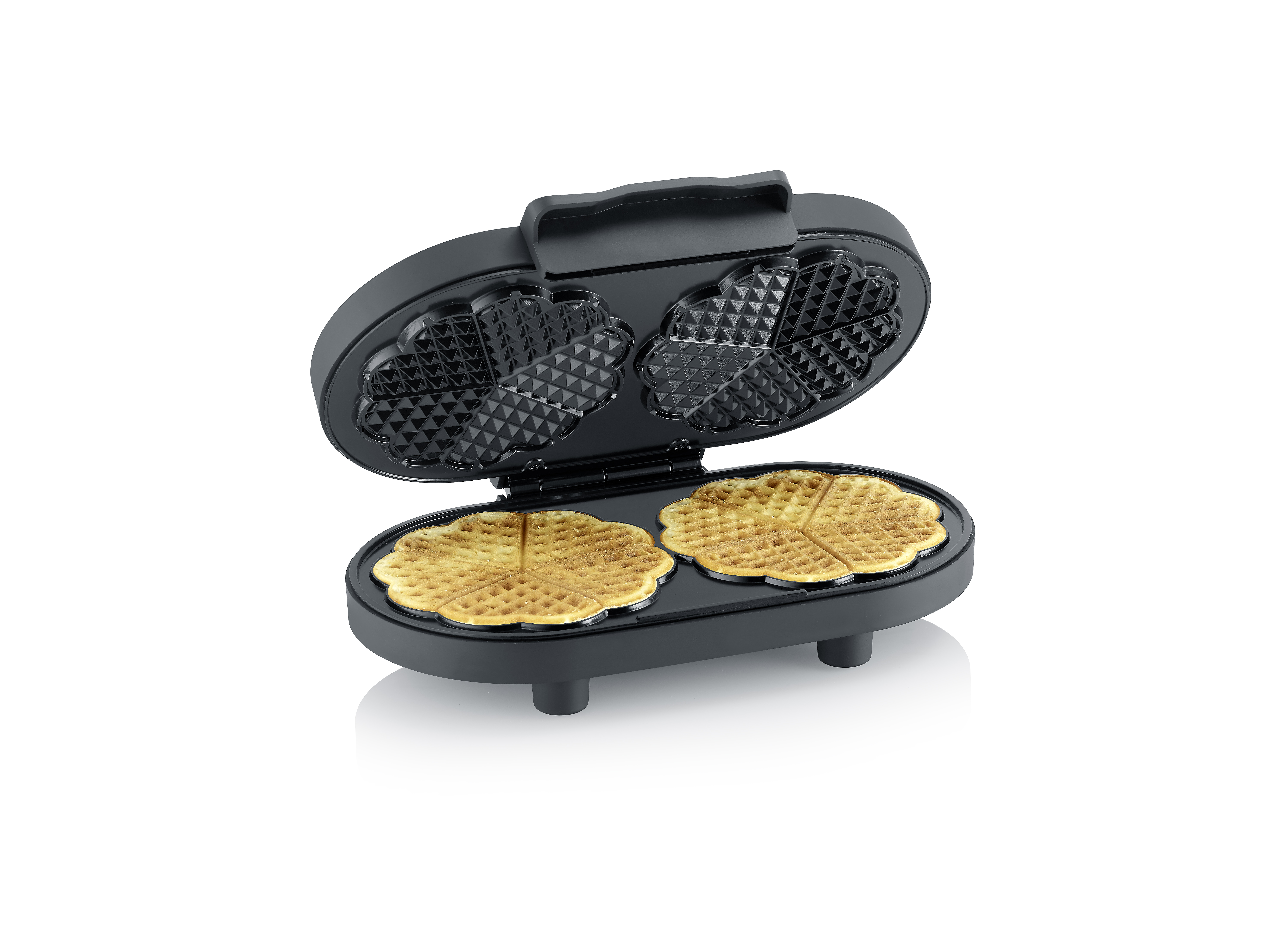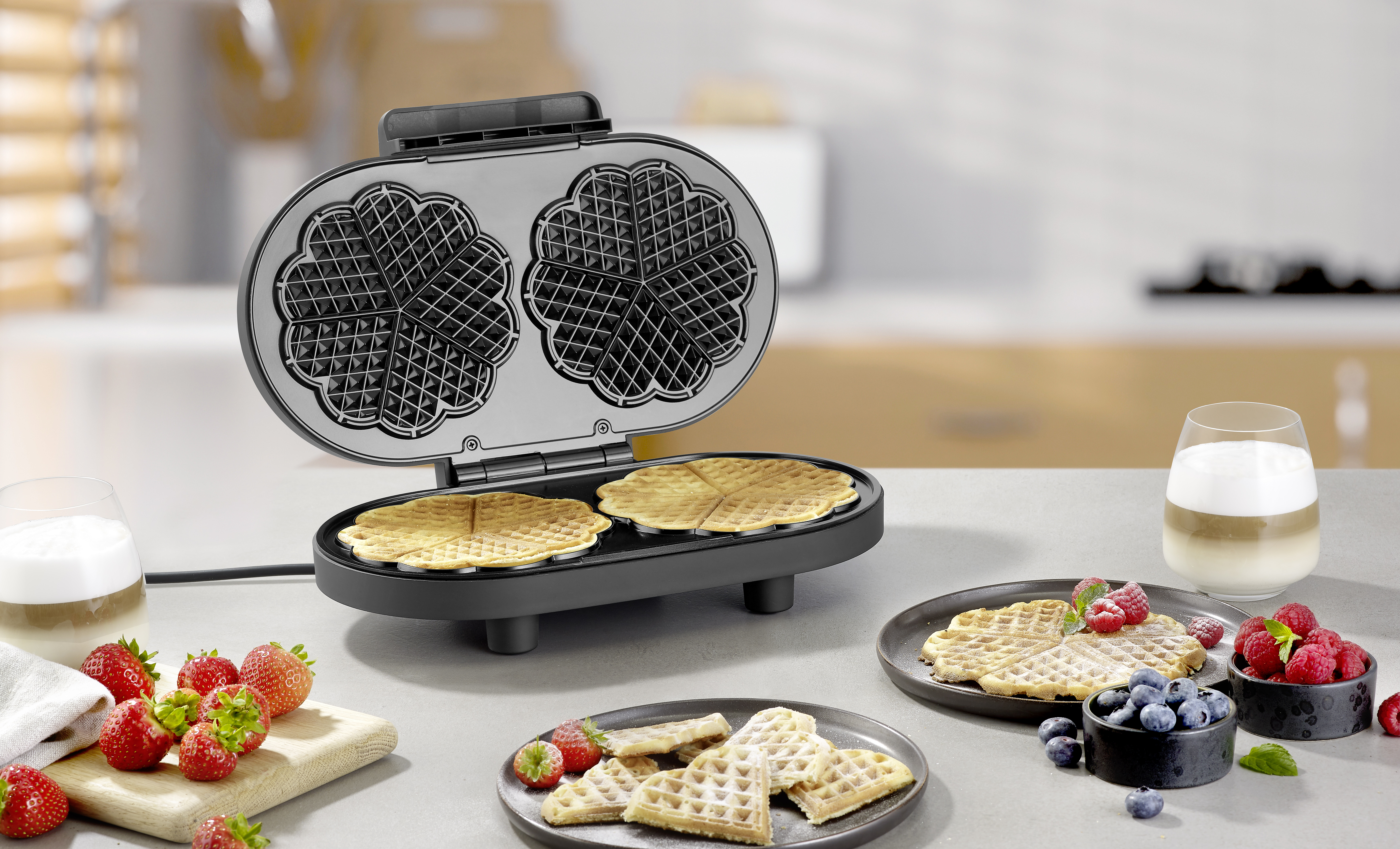 Kaksoisvohvelirauta leipoo kaksi herkullista sydänkuvioista vohvelia samanaikaisesti.